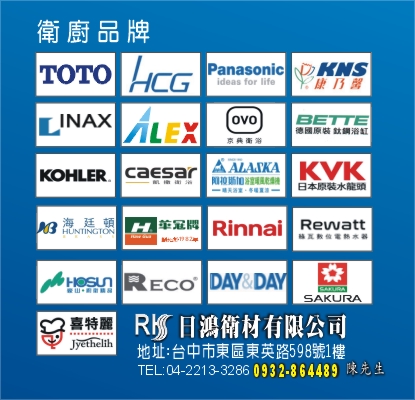 台中市東區衛廚生活館、台中市東區衛浴、台中市太平區衛浴、台中市北屯區衛浴、台中市大里區衛浴、台中市南區衛浴、台中市北區衛浴、台中市衛浴設備安裝、各品牌衛浴設備專業維修、德國GROHE維修零件、TOTO衛浴、INAX衛浴、HCG和成衛浴、ALEX電光牌衛浴、CAESAR凱撒衛浴、OVO京典衛浴、德國原裝BETTE鈦鋼浴缸、KVK日本原裝水龍頭、海廷頓無鉛龍頭、RECO不銹鋼龍頭、Rewatt綠瓦數位變頻恆溫瞬熱式電熱水器、Day&Day廚房衛浴不鏽鋼系列產品、Panasonic浴室換氣暖風機、ALASKA阿拉斯加浴室換氣扇、乾溼分離淋浴拉門、淋浴門止水條、LG人造石檯面客製化、Corins柯林斯防水實心發泡板浴櫃鏡櫃、浴室地磚壁磚泥作翻修工程、壓克力浴缸、Rinnai林內廚房三機、SAKURA櫻花廚房三機、喜特麗廚房三機、豪山牌廚房三機、電動曬衣架、洗衣槽、SPA蒸氣機、家庭水電維修LED燈具安裝、加壓馬達及抽水馬達安裝、二手馬桶水箱蓋、華冠牌鏡子、獨立式浴缸、排油煙機、瓦斯爐、熱水器、烘碗機、壁式瀑布出水浴缸龍頭、衛浴配件、廚房五金配件、KQ不銹鋼浴櫃、TENCO電光牌衛浴、HB衛浴、社福無障礙廁所、電腦馬桶蓋、美國杜邦石檯面客製化、浴室整體規劃修繕工程、天花板施工、廁所門舊換新